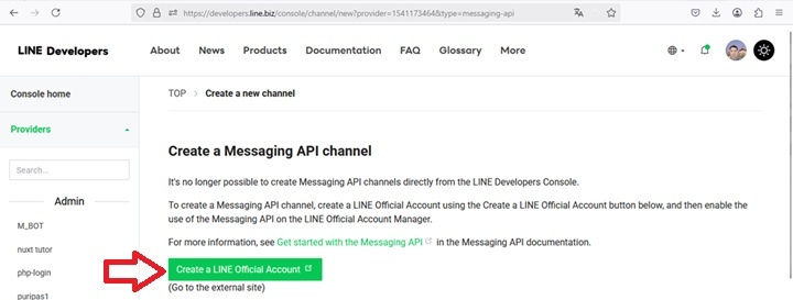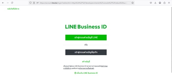 1.เข้าลิ้งก์ https://account.line.biz/login?redirectUri=https%3A%2F%2Fdevelopers.line.biz%2Fconsole%2F แล้วกดปุ่ม เข้าสู่ระบบด้วยบัญชี LINE