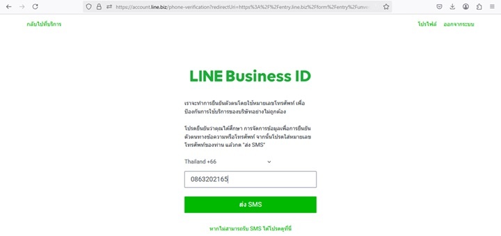 11.กรอกเบอร์มือถือ แล้วคลิกปุ่ม ส่ง SMS