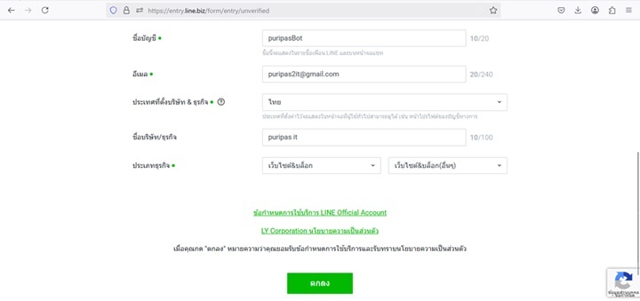 16.กรอกข้อมูลของคุณตามนี้ แล้วคลิกปุ่ม ตกลง
