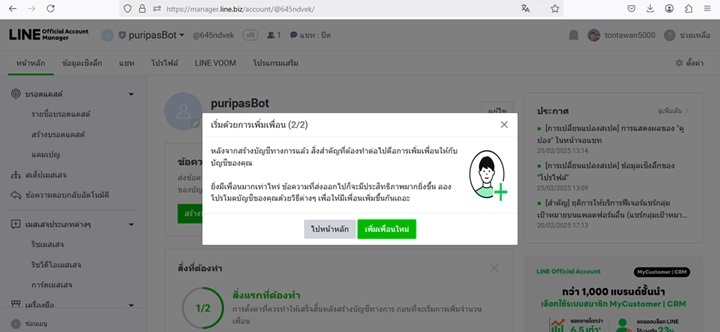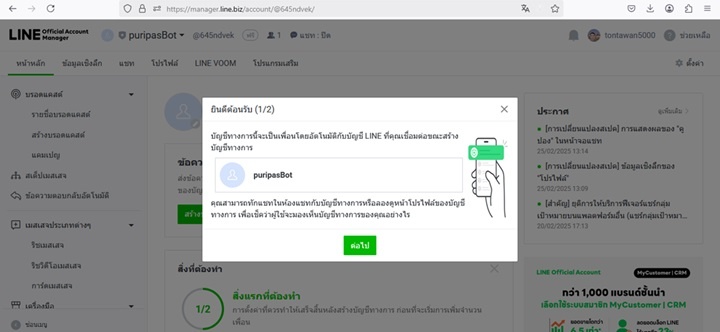 19.คลิกปุ่ม ไป LINE Official Account Manager