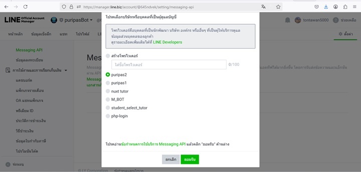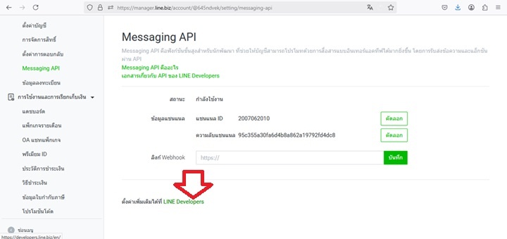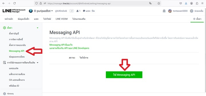 29.คลิกเมนู Messaging API คลิกปุ่ม ใช้ Messaging API