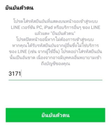 4.เปิดแอพ Line ในมือถือ แล้วกรอกรหัสยืนยันตัวตน