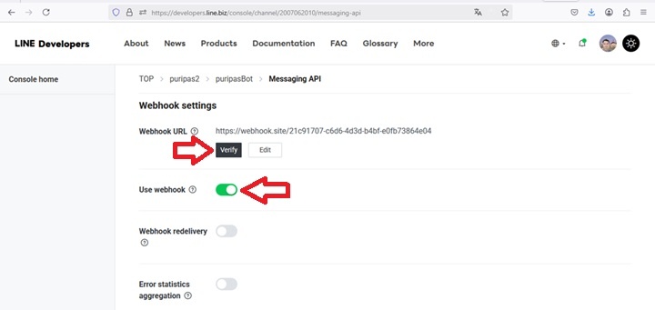 42.คลิกเปิด Use webhook และคลิกปุ่ม verify