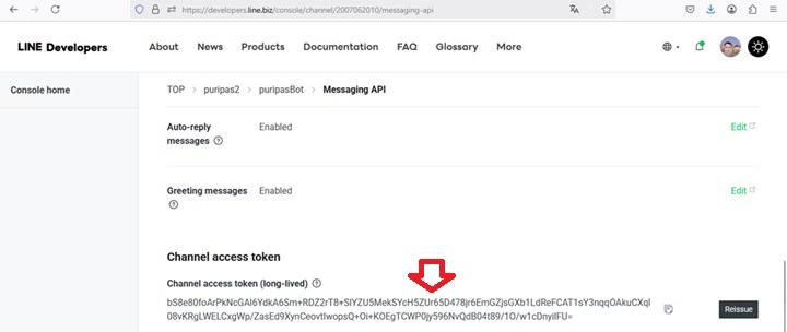 44.คลิกปุ่ม issue ก็จะได้ Channel access token